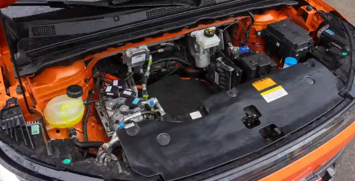Электромотор расположен низко, поэтому подкапотное пространство кажется пустым. На товарных машинах его закроет пластиковый кожух-бокс, где можно будет хранить, например, зарядные кабели