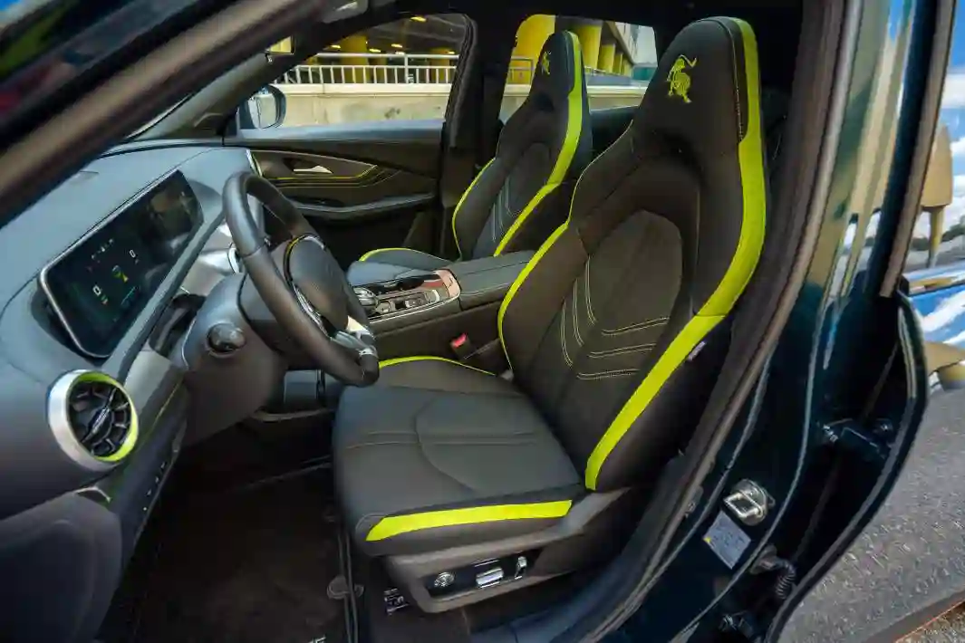 Выглядит i‑SKY спортсменом — обвес с оранжевыми вставками, купеобразный силуэт, кресла-ковши с интегрированными подголовниками. Однако посадка высокая для спорткара, мотор всего один и с довольно скромной для электромобиля отдачей — 204 л.с. и 240 Нм. Этого должно хватить для разгона до 100 км/ч за 8,6 с.